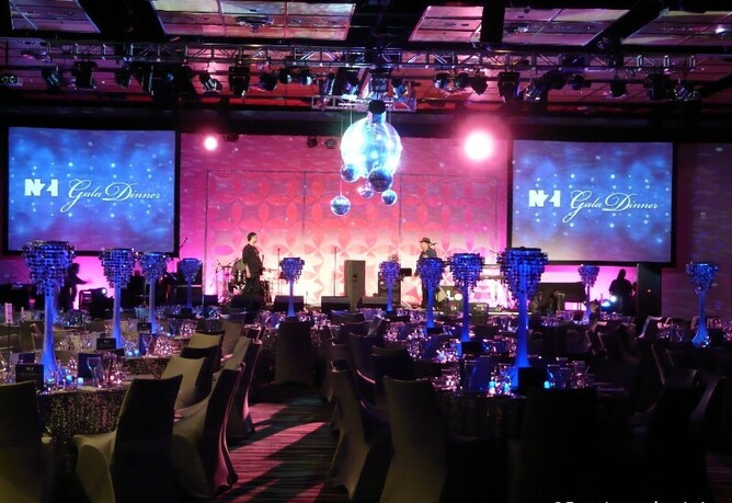 Styling of the IBANZ formal awards night, this year, sponsored by NZI. Our classic gold sequin tablecloths were paired with gold chair covers. Centerpieces glistened with our sparkling shimmiliers, and to top it all off, our gigantic mirror ball (One of the two largest in New Zealand!), was placed centre stage, with a selection of smaller mirror balls orbiting it – a truly spectacular sight.