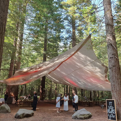 Let the forest evolve with your celebration. From golden-hour dining to dancing under twinkling lights, Under the sails weddings and receptions are unforgettable. We can take care of everything: power, lighting, heating, toilets, and venue management.